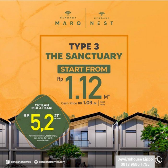 Cendana Marq & Cendana Nest ini adalah Cendana yang ke 10 dari Cendana Homes series yang telah sukses, selalu sold out setiap launchingnya. Cendana Marq & Cendana Nest ini sekaligus tahap yang terakhir.