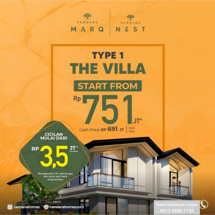 Ada yang baru dari Cendana Homes, yaitu Cendana MARQ dan Cendana NEST. Harganya masih terjangkau lho..rumah 2 lantai modern di lokasi strategis kawasan Lippo Village, Lippo Karawaci Tangerang.Â