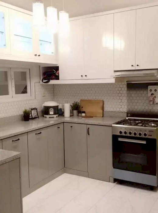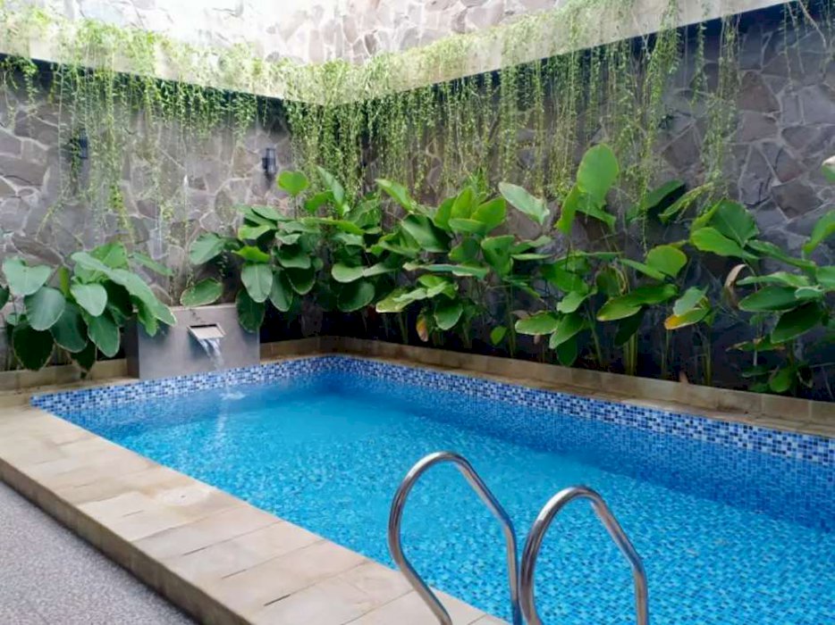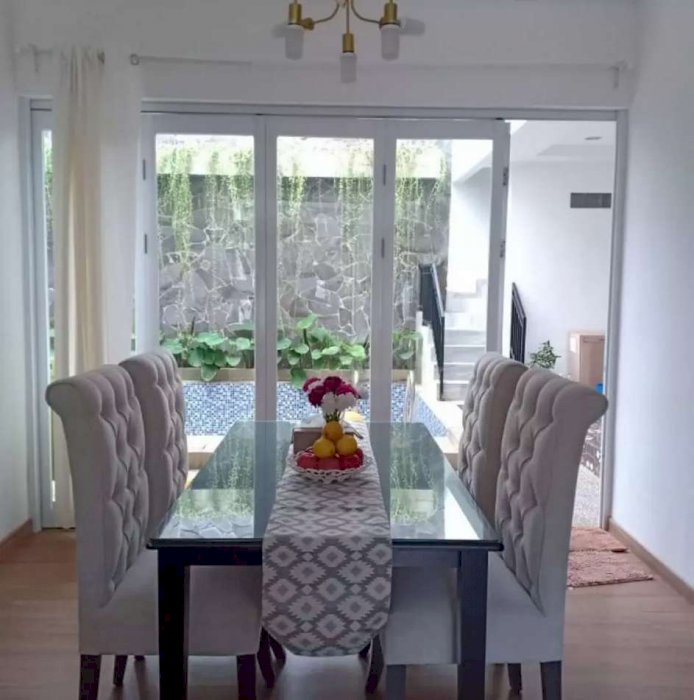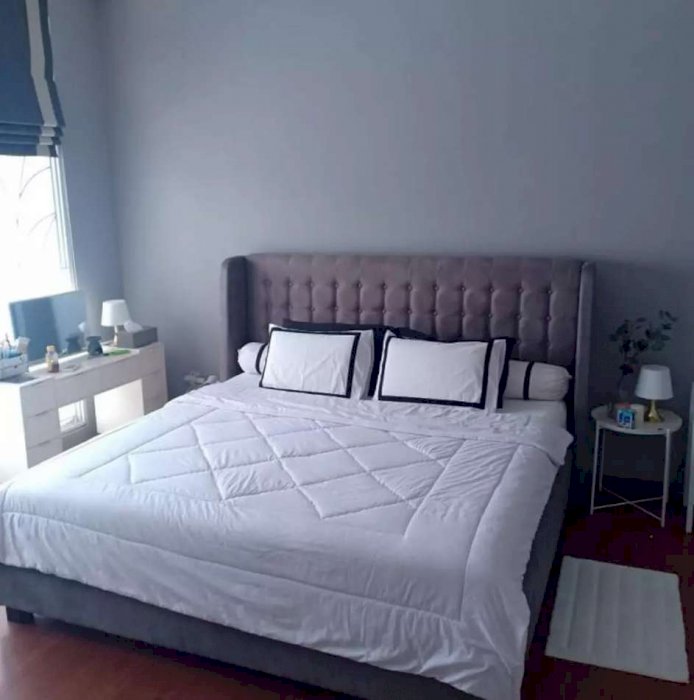 Dijual berikut isinya furniture design by RF + IKEA Furnish + kolam Koi dengan Fountain Marmer berikut Ikan Koi koleksi All Golden Colour, master Bedroom dengan fasilitas super mewah (Super Kingsize bed Orthopedy ukuran 200*200+ Custom divan made by RF, Bathub dengan water heater + shower, custom lemari sudut dengan showcase untuk koleksi tas Branded) Kitchen Set Duco, semua kamar mandi dilengkapi dengan kloset duduk + shower dan view jendela menghadap swimming pool
